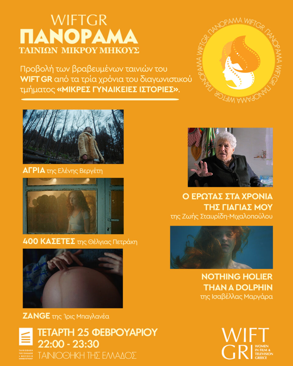 Μία πρωτοβουλία του WIFT GR για την προβολή και υποστήριξη του δυναμικού παρόντος του ελληνικού γυναικείου κινηματογράφου, την ανάδειξη του female gaze και τις σύγχρονες προσεγγίσεις του, παρουσία των συντελεστριών των ταινιών που θα προβληθούν.